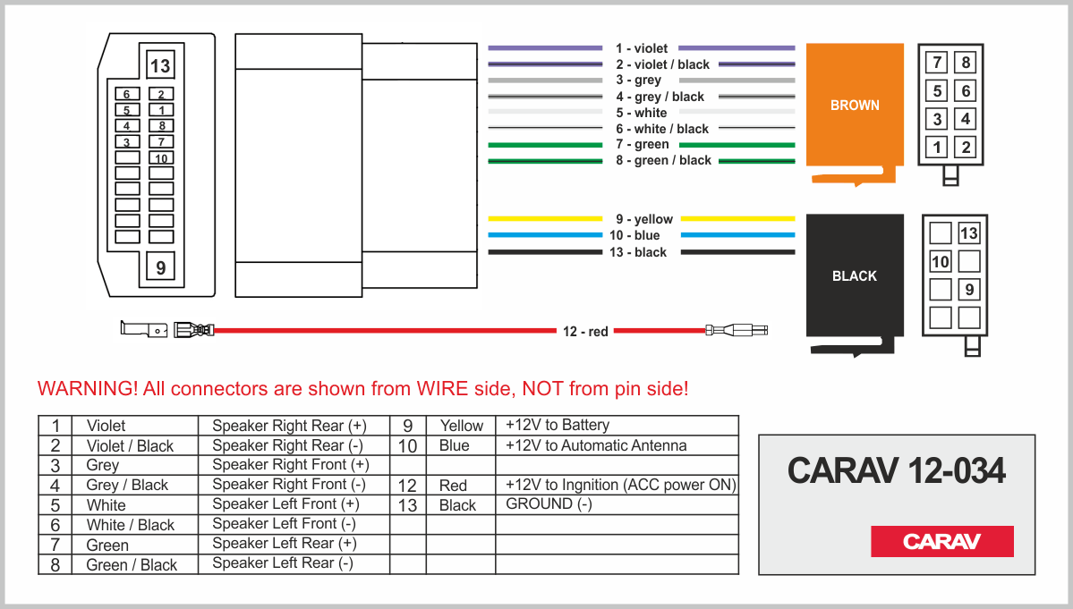 Connector OEM (female) <---> CARAV <---> ISO (male)