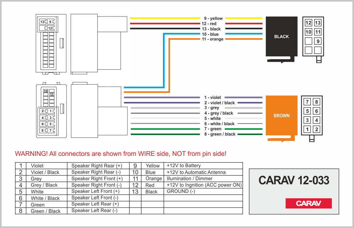 ISO (female) <---> CARAV <---> Connector OEM (male)