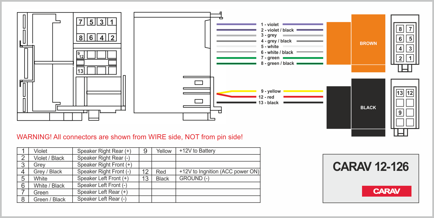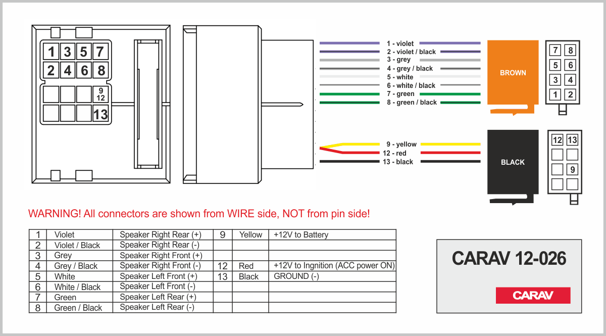 Connector OEM (female) <---> CARAV <---> ISO (male)